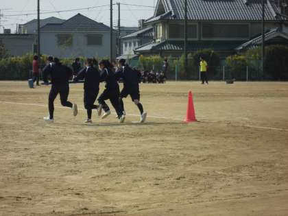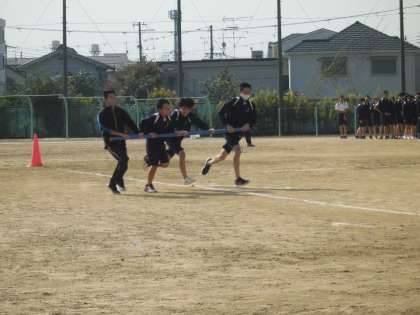 体育の授業でクラスマッチの種目である「台風の目」の練習をしている様子です。とても盛り上がっていました。