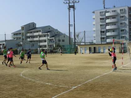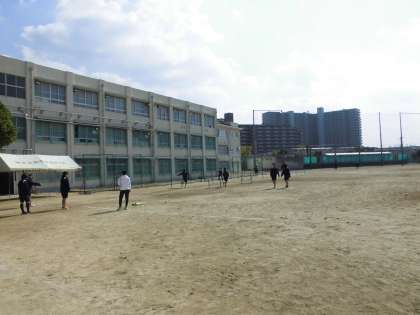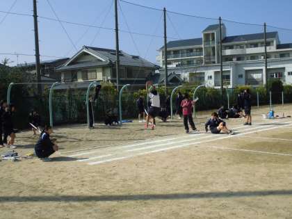 グランドでの授業風景です。今日はとても暖かく気持ちのいい天気です。