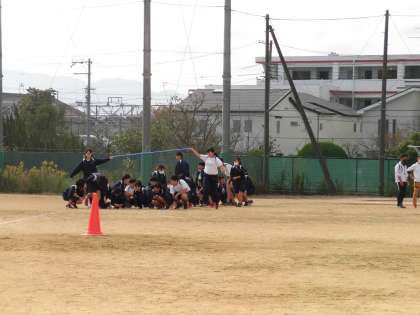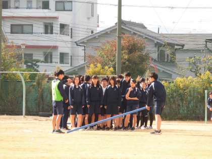 クラスマッチに向けて「渦潮リレー」を練習中です。