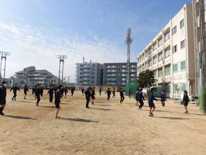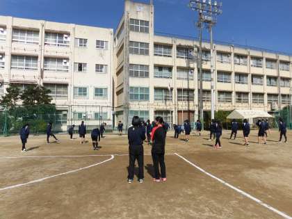 女子体育、元気な体育委員の号令が響いています。