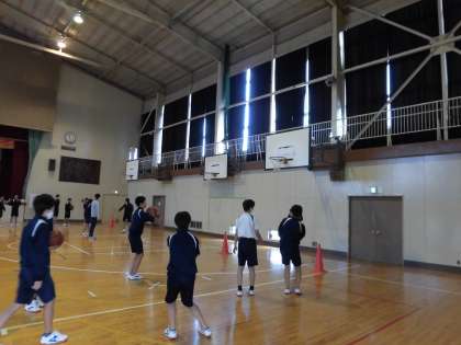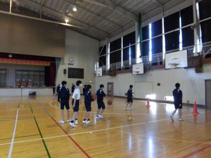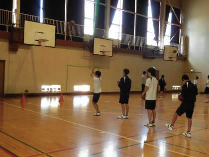 男子体育は体育館でバスケットボールです。