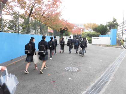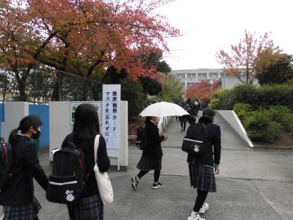 今朝は時々、小雨模様です。 傘を持っている人も多いようです。