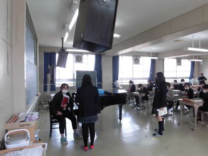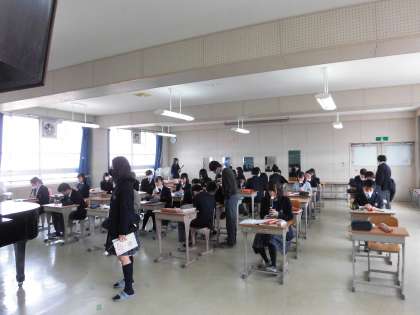 音楽授業ではリコーダーのテストをしていました。