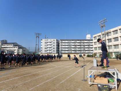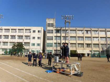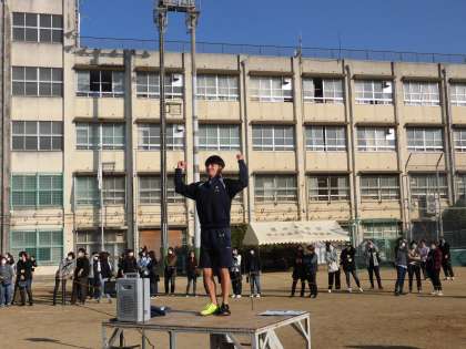 競技の諸注意と応援時のマスクの着用をアナウンスしています。