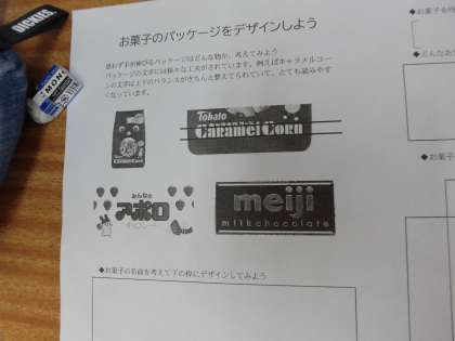 美術授業です。 お菓子のパッケージをデザインします。