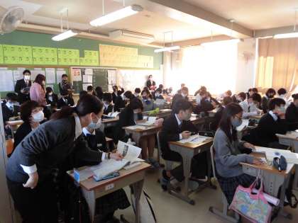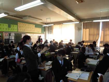 大学の先生も参観に来てくださいました。 いつもよりたくさんの先生方が見守る中ですが、皆さんしっかり授業に集中しています。