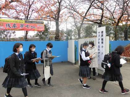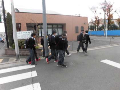 登校の様子です。 ノートやプリントを手に、テスト勉強しながらの登校も見られます。