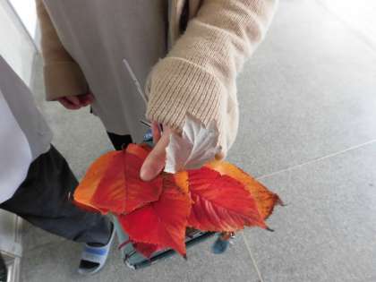 支援学級では昼休みに集めた美しい葉っぱで「落ち葉アート」をつくるそうです。 出来上がりが楽しみですね。
