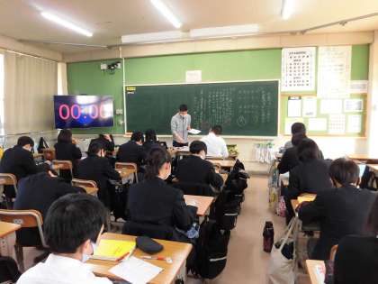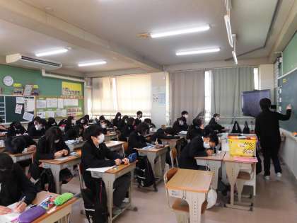 廊下の窓も全開で換気中です。 国語と理科授業です。