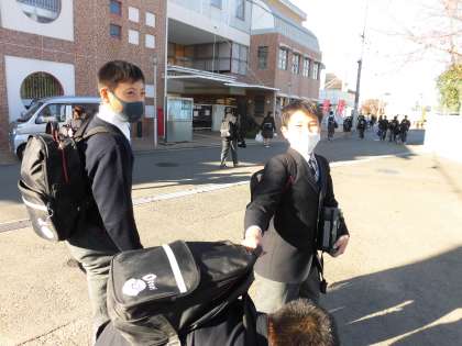 下校2 公開日 2020/12/04 更新日 2020/12/04 お知らせ 皆さん、金曜日の下校時は特に晴れ晴れとしているように感じますね。 お休みは何をしますか?と聞くと「土曜マイスタ!」との返事もありました。