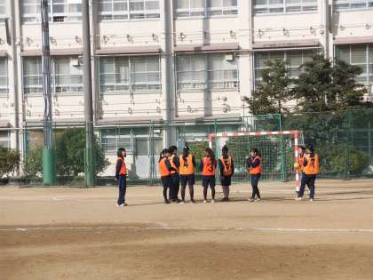 良いお天気のもと、楽しんで授業をしています。
