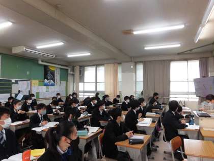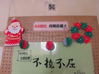 「不撓不屈」の月間目標もクリスマスになっていました。 国語と数学授業です。