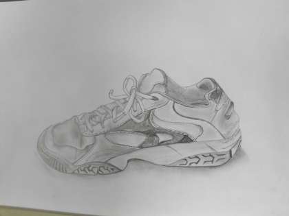 美術は「自分の靴」を描いています。 靴箱前で「写真撮る?」とお誘いしてくれました。 力作ぞろいでしたよ。