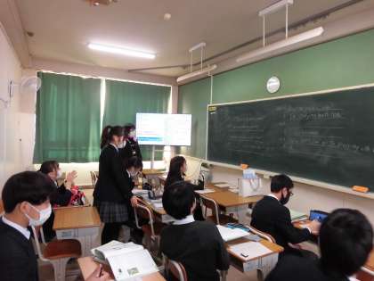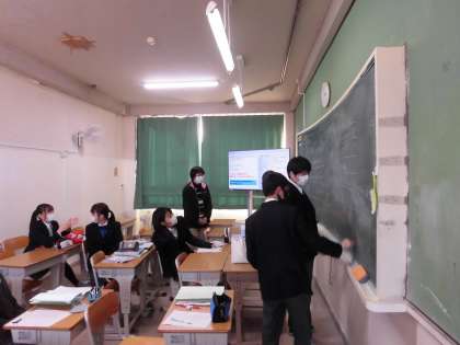 英語授業です。解答を板書中です。