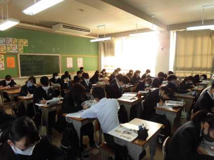 社会科授業です。疑問に関して意見交換しています。