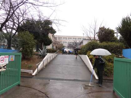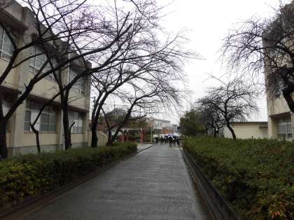 傘をさしての登校です。