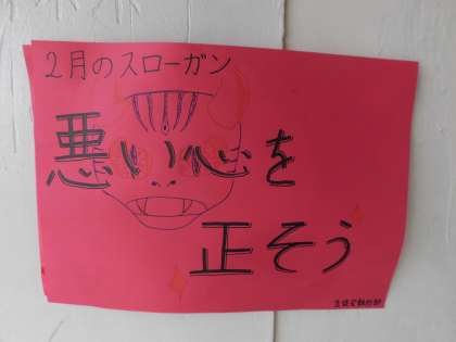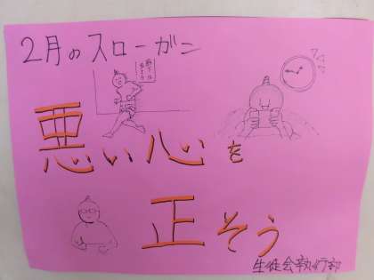 2月のスローガンを掲示しています。