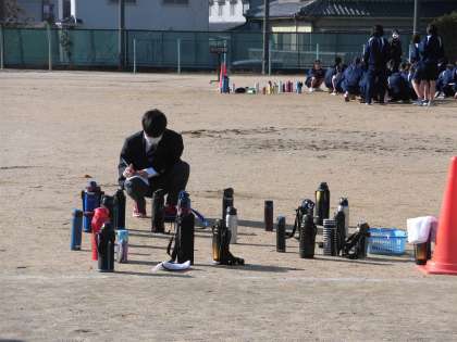 走る前には脈拍数を数え、健康状態のチェックをします。 飲み物も用意して万全の状態で臨みます。