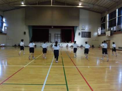 女子体育授業、シャトルランです。