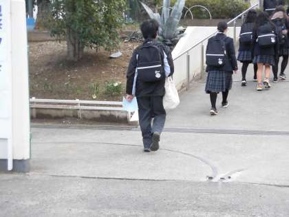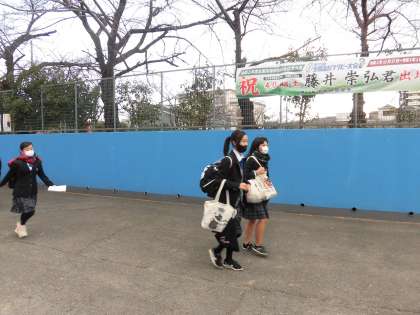 しっかりと健康観察カードを手に登校してくれる人や3年生は風にも負けずノートを見ながら登校する人もいました。