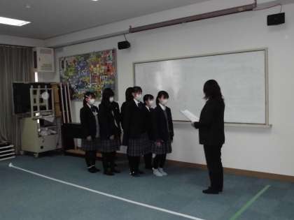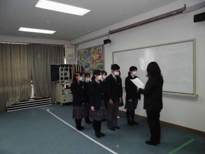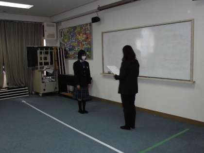 本日の6限、ライヴ配信による全校集会が行われました。まずは表彰伝達(吹奏楽部・健康啓発標語コンクール)の様子です。