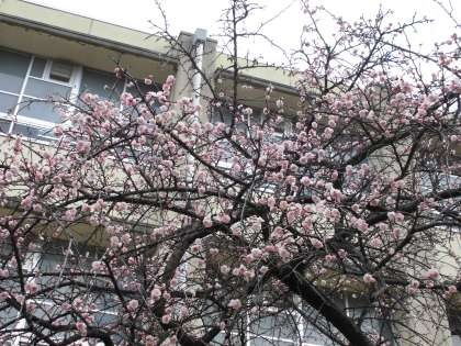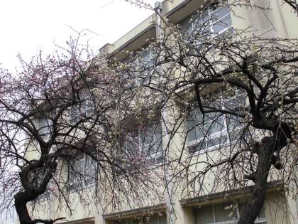 暖かい日々が続いていますが、本校の梅も咲き始めました。