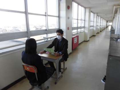 英語授業です。メンデス先生とスピーキングをしています。