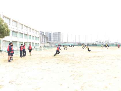 キックベースボールをしています。とても楽しそうです。