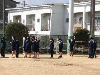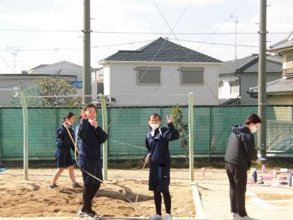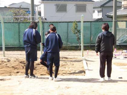 女子体育、「走り幅跳び」のテスト中です。