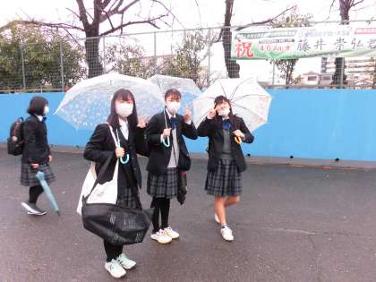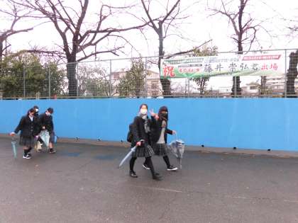 少し雨も止み始めました。今日も元気に登校しました。