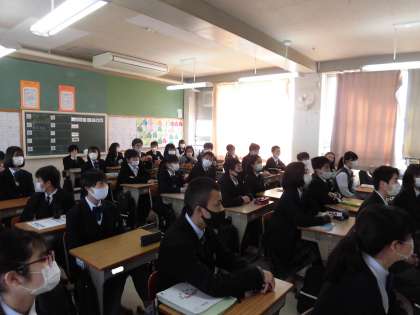 授業の様子です。 今日は小学校の先生が6年生のために中学校授業の様子を撮影に来られています。