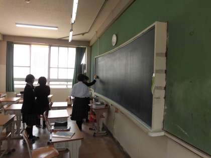 休み時間の様子です。 教室の移動や、次の授業準備で黒板をきれいにしてくれています。