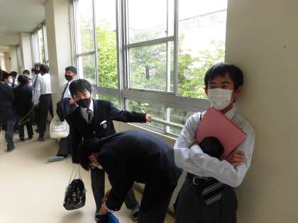 休み時間です。先生に質問中です。