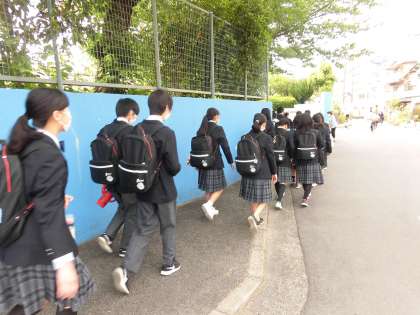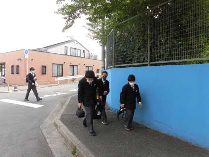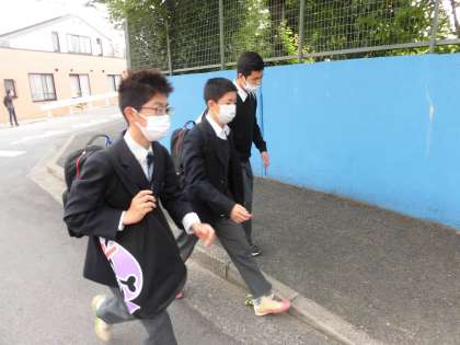 登校 公開日 2021/05/11 更新日 2021/05/11 お知らせ 学校前の道は少し狭く、車も通行するので気を付けなくてはいけないのですが、皆さん横に広がらず、歩道に寄って登校しています。 特に上級生はマナーをしっかり守ってくれています。