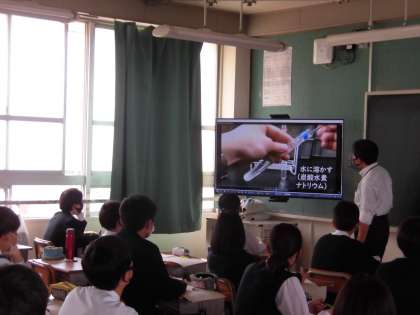 理科授業です。実験映像を見ていました。