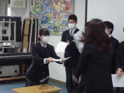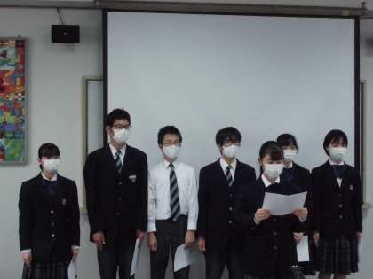 本日の6限、ライヴ中継による全校集会が行われ、最初に放送部の皆さん司会で、認証式が行われました。