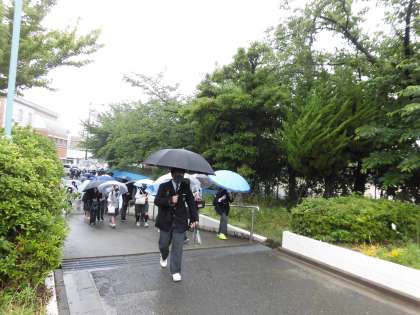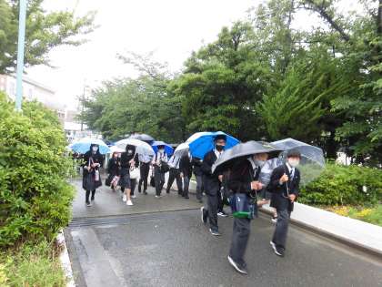 「おはようございます!」の後、「靴の中がびしょびしょです!」の声が多く聞こえてきました。