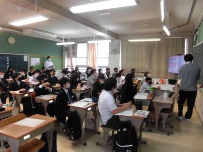 1年生 公開日 2021/05/27 更新日 2021/05/27 お知らせ 実習生が授業をしています。 沢山の先生が見ている中での授業実習は緊張しそうですね。 実習生のうちの一人の感想は 「生徒の皆さんが一生懸命協力してくれ、答えてくれたりするのでありがたいです。」とのことです。