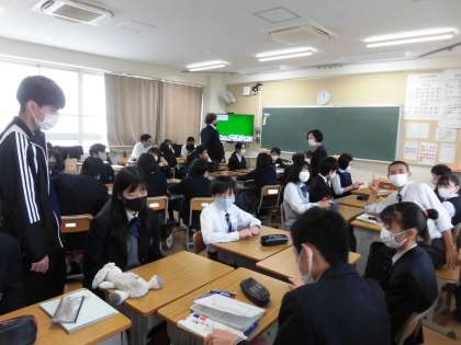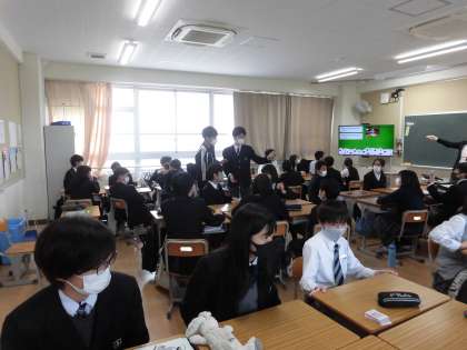 3年生 公開日 2021/05/27 更新日 2021/05/27 お知らせ ニール先生との英語授業です。 何をするのですか?と聞くと「英語でカード」だそうです。 「勝ちますよ。」との頼もしい答えでした。