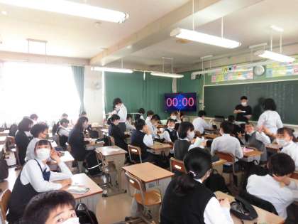 国語授業です。小テストを返却中でした。