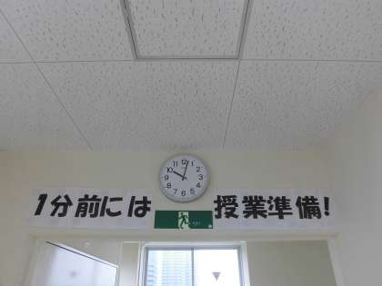 3年生フロアは各階の時計の横にわかりやすい標語が掲示されていました。