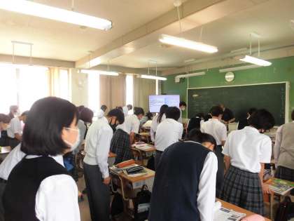 授業が終わりました。 終了のあいさつをして休み時間です。