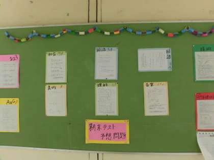 2年生フロアにも期末テスト予想問題が掲示されています。