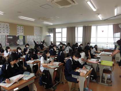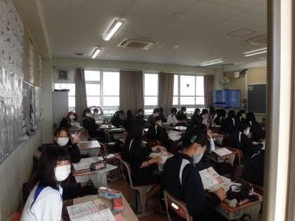 女子体育授業は教室です。 いつも朗らかな皆さんで良い雰囲気ですね。