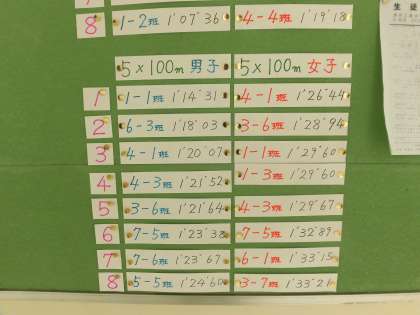 掲示板に新たな掲示がされていました。 体育授業の記録でしょうか。