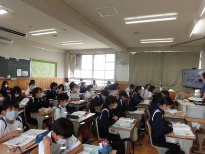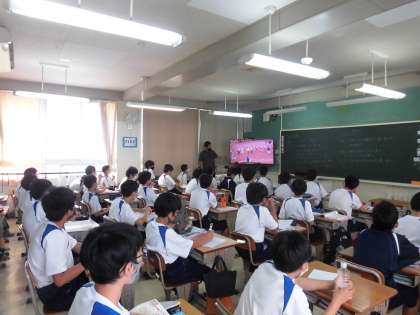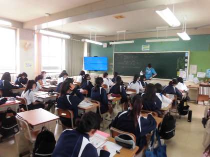 体育授業は教室で座学です。 英語の授業ではしっかりと発音できていました。