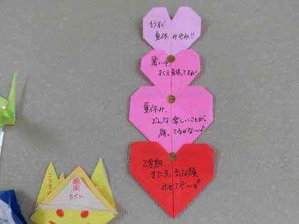 英語授業です。 それぞれの学年フロアの掲示板も楽しみですね。 2年生は先生からのメッセージも掲示していました。