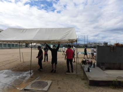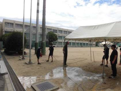朝早くからクラスマッチの準備をしています。 写真は2年生です。