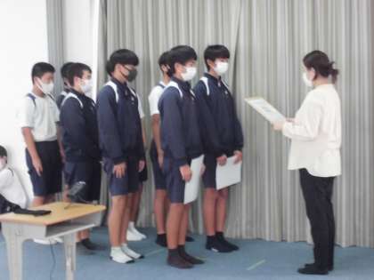 本日の6限、オンラインによる全校集会が行われました。表彰伝達に始まり、校長先生のお話、生徒指導主事の先生のお話、生徒会からのお話がありました。