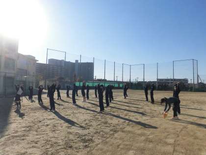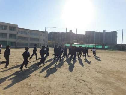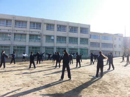 女子体育です。 ランニングと準備体操です。
